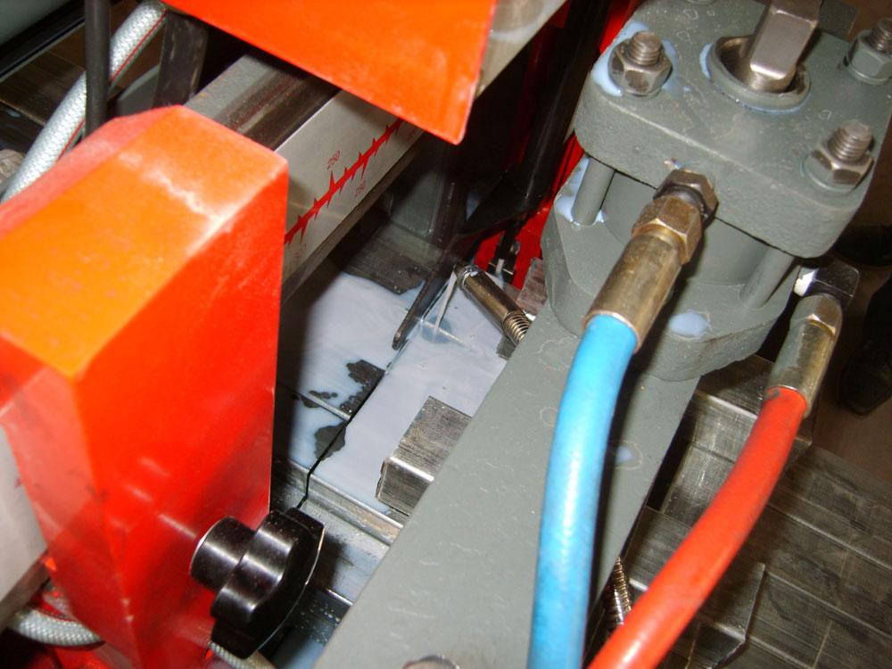 ④鋼刷傳動裝置,采用隨主傳動連動的主動傳動,有效的刷去鋸齒上的鋸屑,避免了由于粘屑而造成的打齒現象;鋼刷與鋸條的位置可隨鋼刷的磨損隨時調節,延長了鋸條壽命。