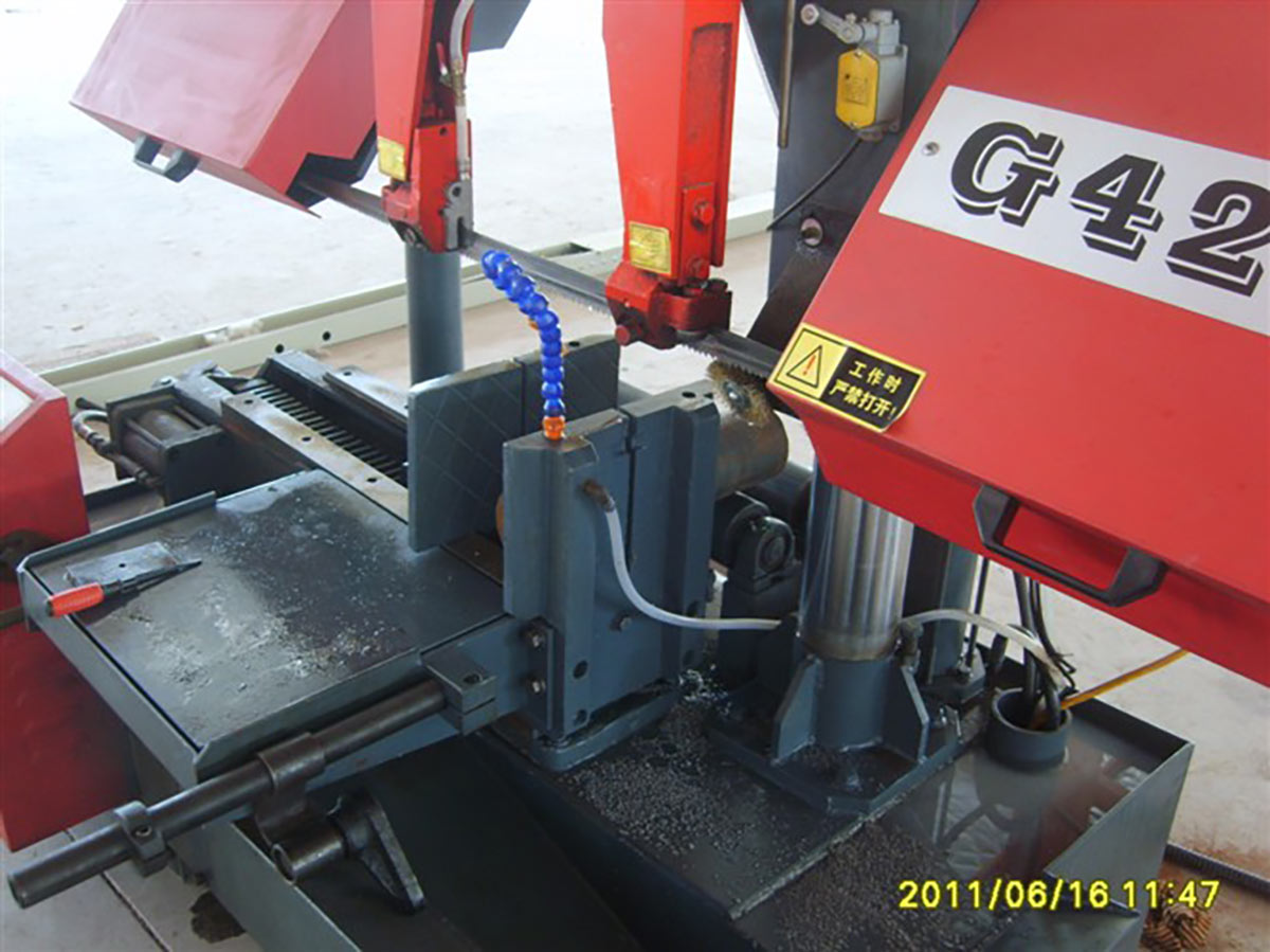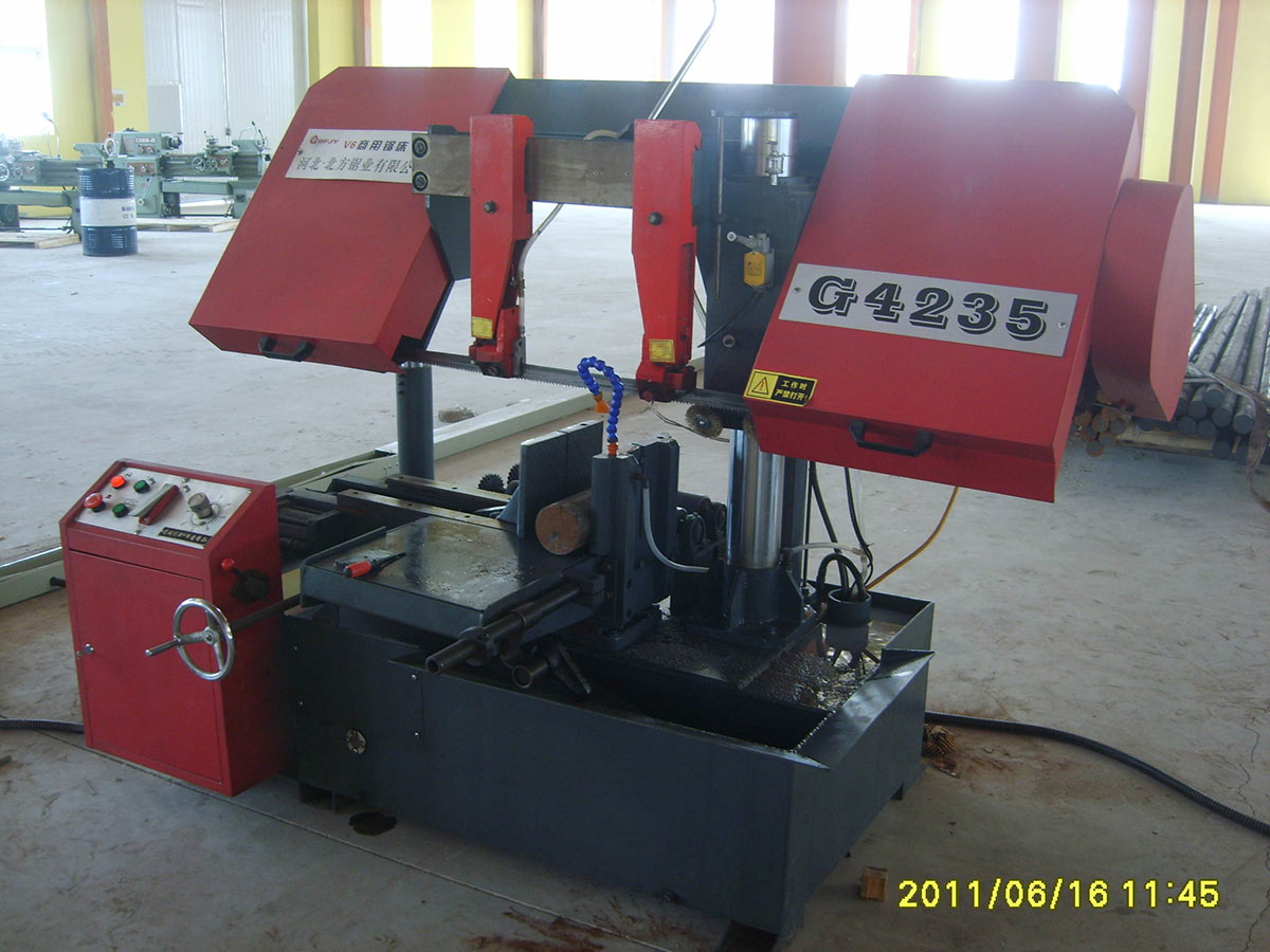b ) 鋸床結構:臥式半自動、雙柱(主副立柱)